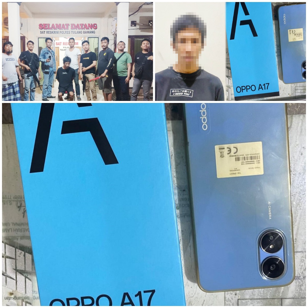 "Adapun barang bukti (BB) yang disita oleh petugas kami dalam pengungkapan kasus curat ini berupa handphone (HP) android merek Oppo A17 warna biru laut milik korban Ari Wibowo (37), berprofesi wiraswasta, warga Kampung Karya Murni Jaya, Kecamatan Banjar Baru, Kabupaten Tulang Bawang," papar perwira dengan balok kuning satu dipundaknya.